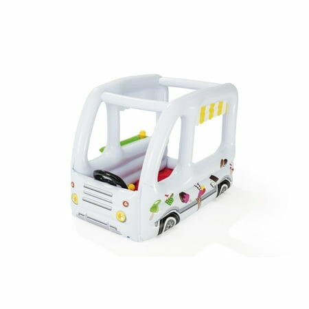 The Bestway Scoops N Smiles Ice Cream Truck Ball Pit is a versatile toy for inspiring hours of make-believe fun. This enclosed ball pit looks just like a kid-sized version of the real thing. An open space in the back of the truck provides a spot for your child to climb in while the other three sides feature inflatable walls with windows for looking out. It includes two toy ice cream cones that fit into an attached inflatable tray table that hangs from the ice cream truck s open window. An inflatable steering wheel is built-in into the front of the truck making it easy for your child to pretend to drive and deliver ice cream for hours on end. Bright colorful pictures of ice cream make this toy a fun addition to any playroom. The Scoops N Smiles Ice Cream Truck Ball Pit also comes with ten play balls that can be added to the ball pit for children to roll in or toss and catch. Kids will learn special awareness refine their motor skills develop hand-eye coordination and build confidence as they play.