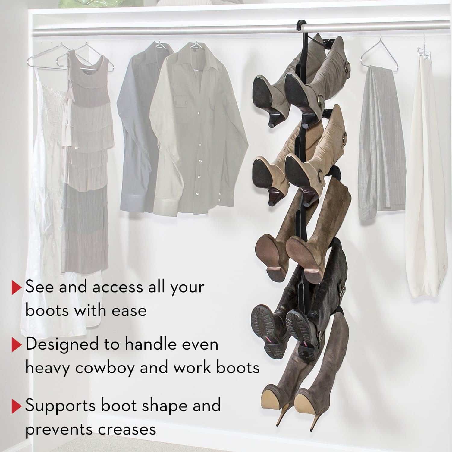 - SAVE YOUR PRECIOUS BOOTS!! No more creases and scuffs from being left on your closet floor so you get more wear from the footwear you love.