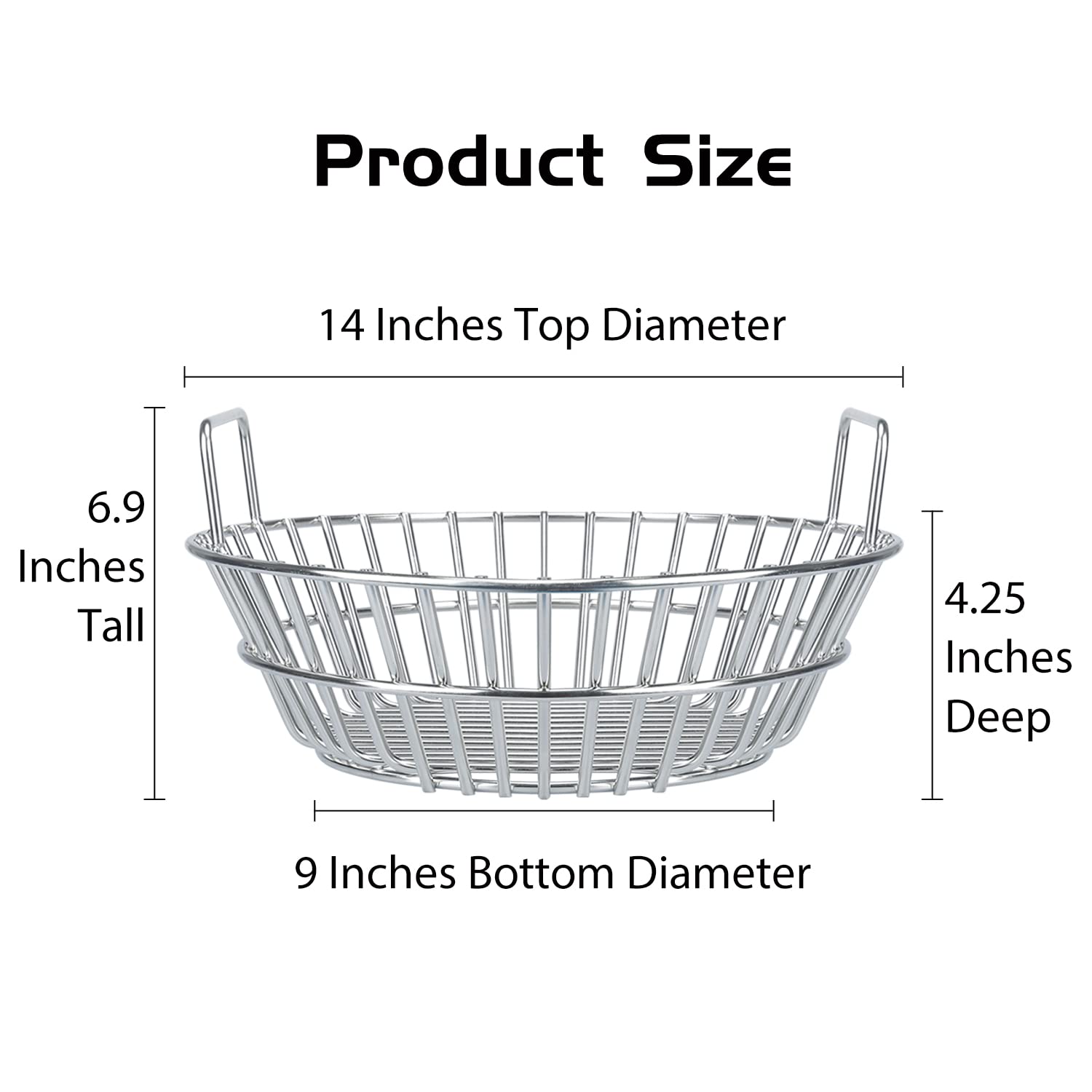 Charcoal Basket, Grill Ash Basket for Big Green Egg Large, 14 Inches Stainless Steel Ash Basket