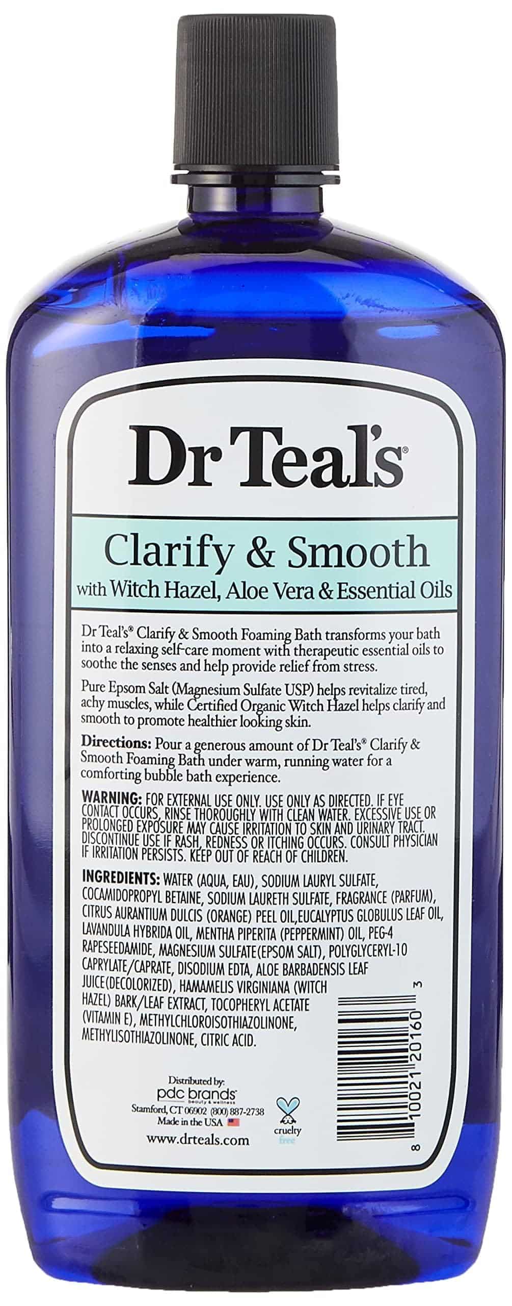 Dr Teal's Foaming Bath with Pure Epsom Salt, Clarify & Smooth with Witch Hazel & Aloe Vera, 34 fl oz (Packaging May Vary)