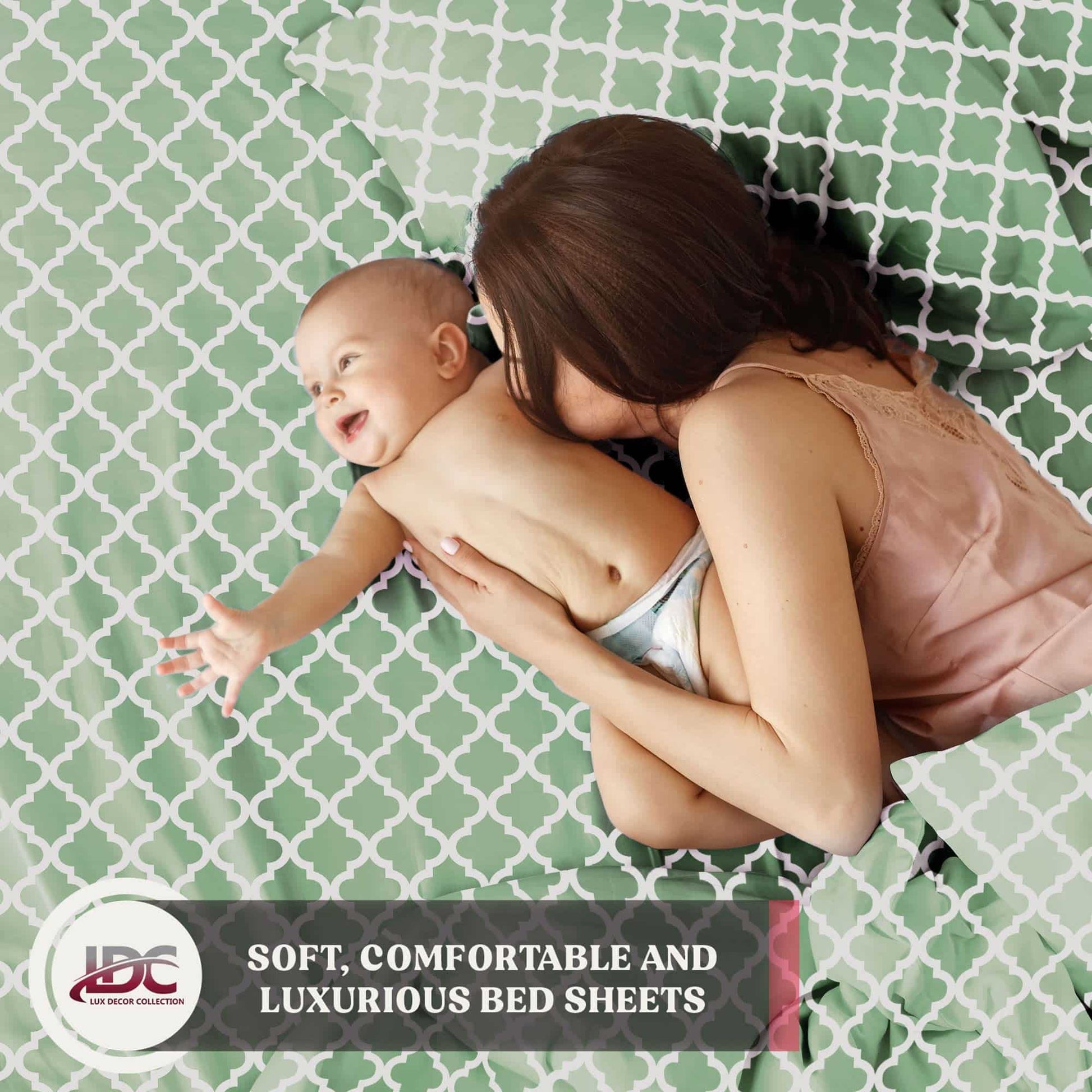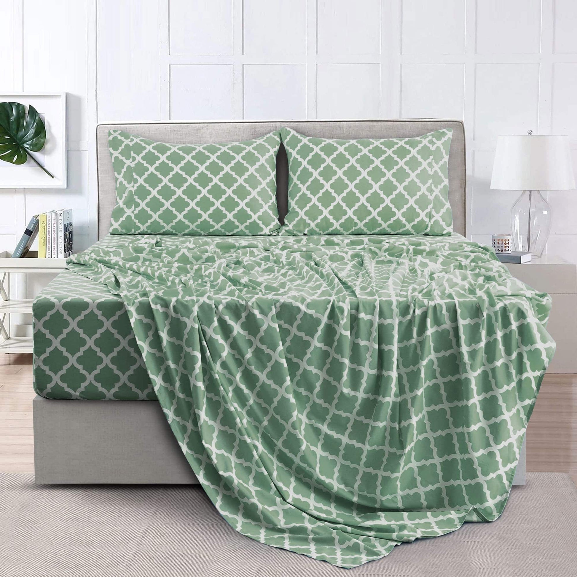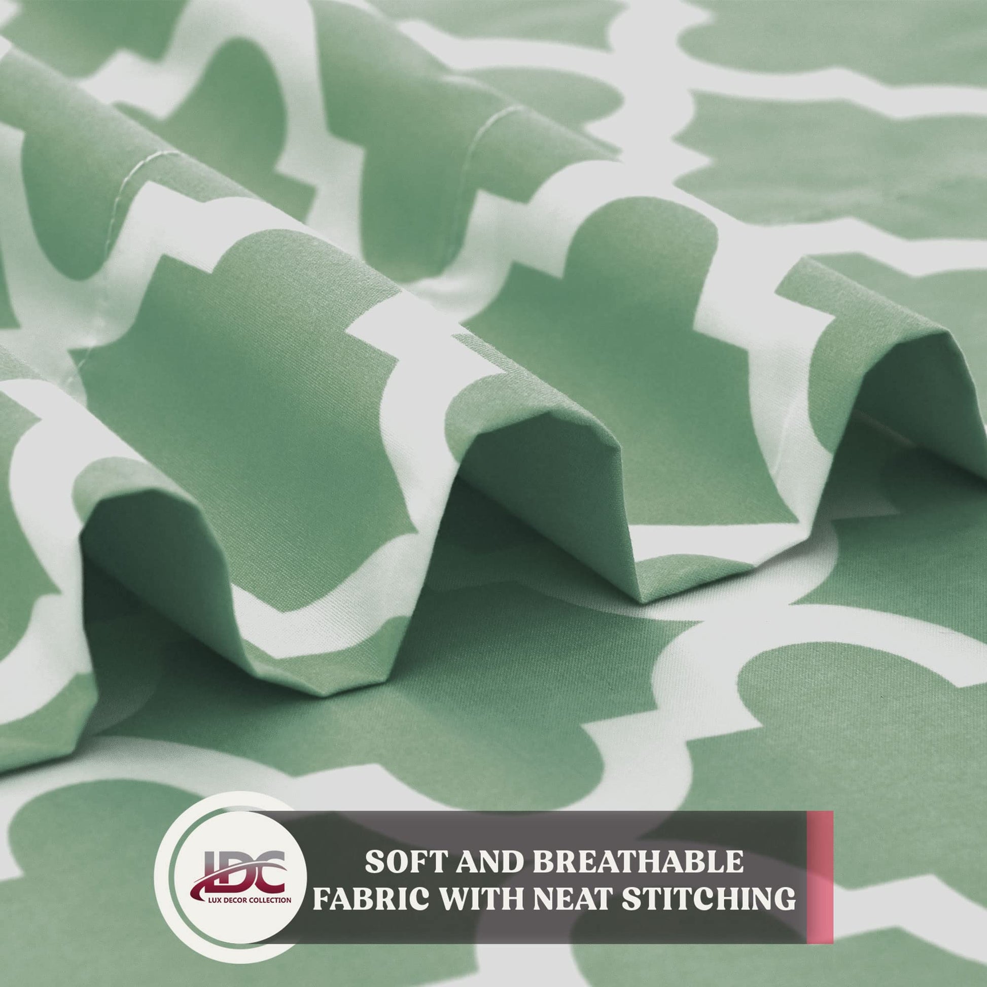 LDC LUX DECOR COLLECTION Bed Sheets - 4 Pc Queen Size Sheets - High GSM Brushed Microfiber Sheets -Upto 16 Inches Deep Pocket Bedding Sheets & Pillowcases (Queen, Quatrefoil Sage)