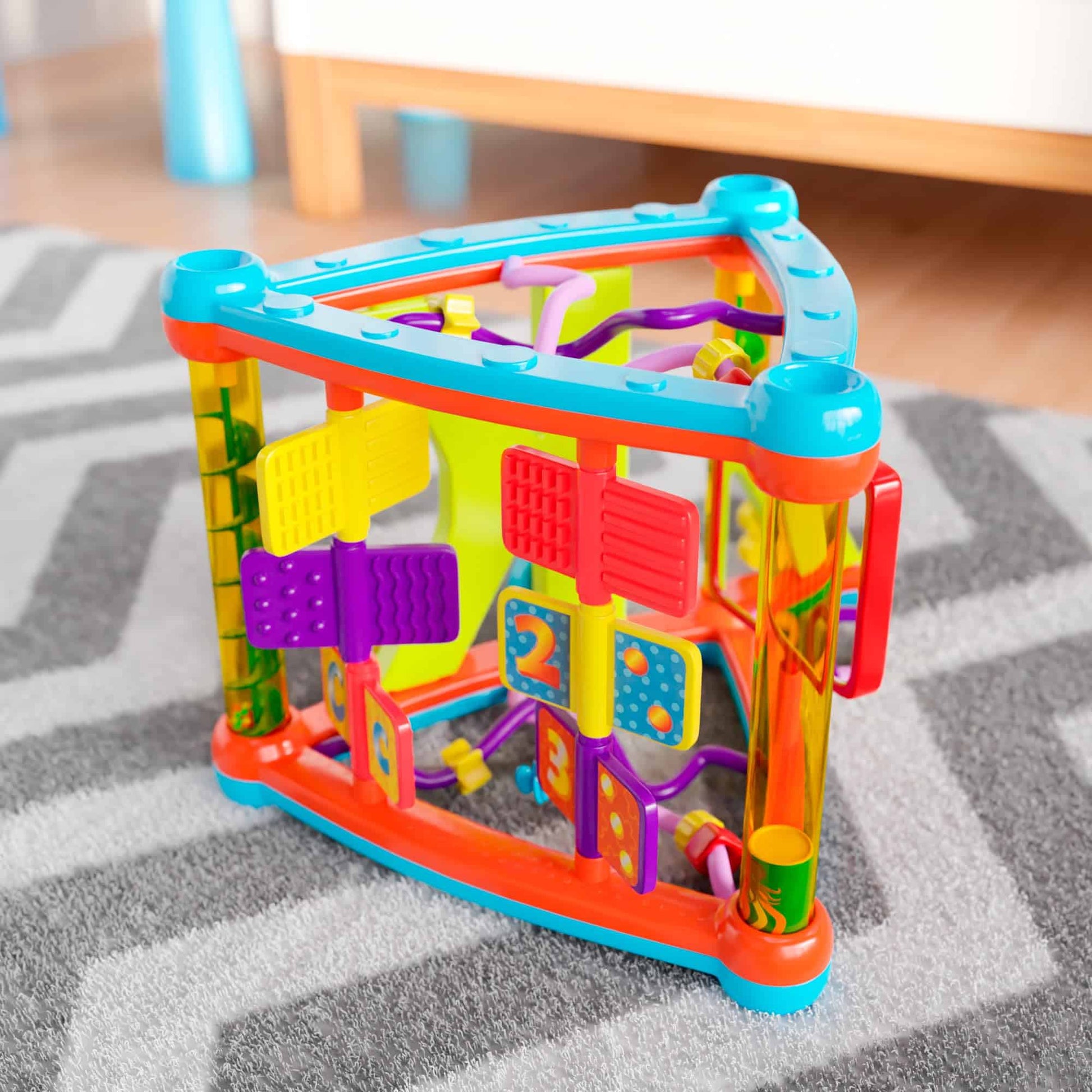 - Hands-On Learning with an Activity Cube for Baby: Our activity triangle, often referred to as an activity cube for baby, is a perfect introduction to hands-on learning for babies on the verge of toddlerhood.