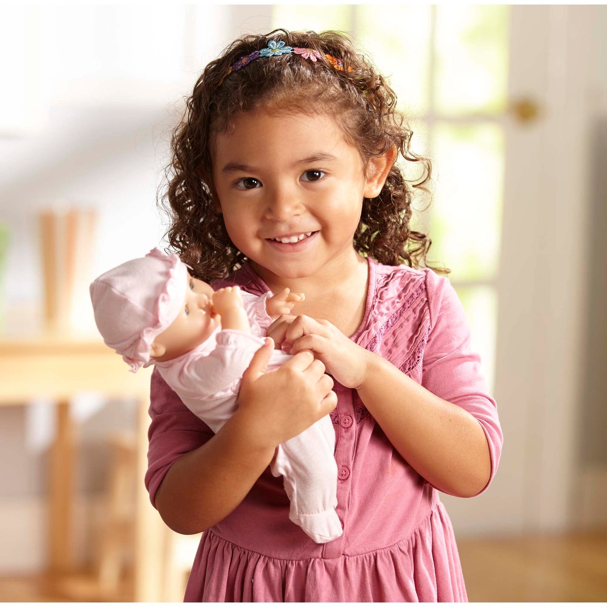 Product Description Jenna is the ideal, sweet smelling, first-born baby doll. Even the youngest mommy will love her sweet face and soft, cuddly body (and real moms will love her wipe-clean arms and legs!). She is "pretty in pink" from head to toe, in a removable, smocked, onesie and matching cap. Her eyes open and close, and she can suck her thumb or her pacifier (included). From the Manufacturer Melissa & Doug toys are designed to nurture creativity and imagination. From classic wooden toys to creative crafts, pretend play, and games, Melissa & Doug's products inspire exploration and enrich children's lives in a way that's as engaging as playtime itself! Since the Company's founding more than 25 years ago, Melissa & Doug has consistently delivered innovative children’s products with a commitment to uncompromising quality, safety, service and value. Well-designed, durable playthings should be accessible to all, and Melissa & Doug strives to foster wonder and a lifelong love of learning in children throughout the world.