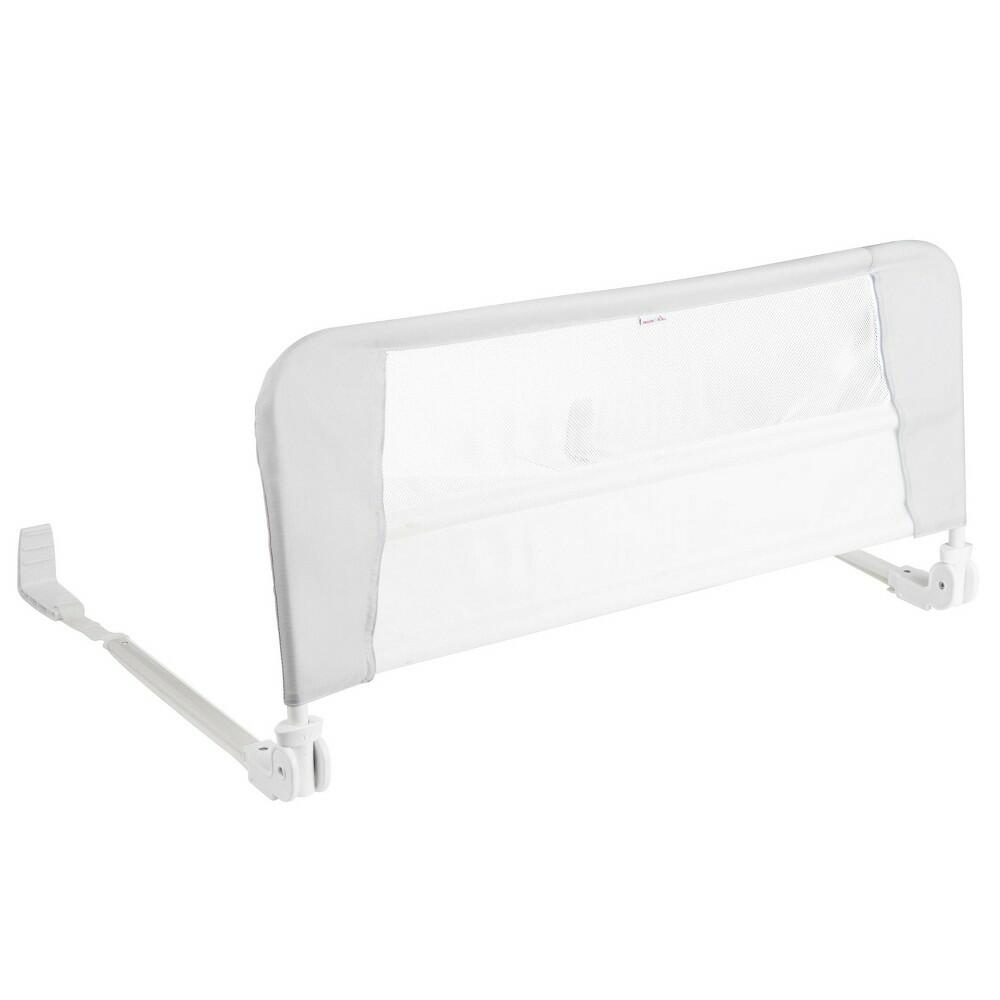 The Munchkin Safety Toddler Bed Rail keeps your little one safe and sound while in bed. The lightweight extendable metal frame, measuring 18" inches tall and extending 36" inches wide, is padded, covered with fabric, and fits mattress sizes twin to queen. The secure locking mechanism and convenient hinged folding design makes lifting your child and changing their bedding easy. And to make your life even easier, there is no assembly required.?