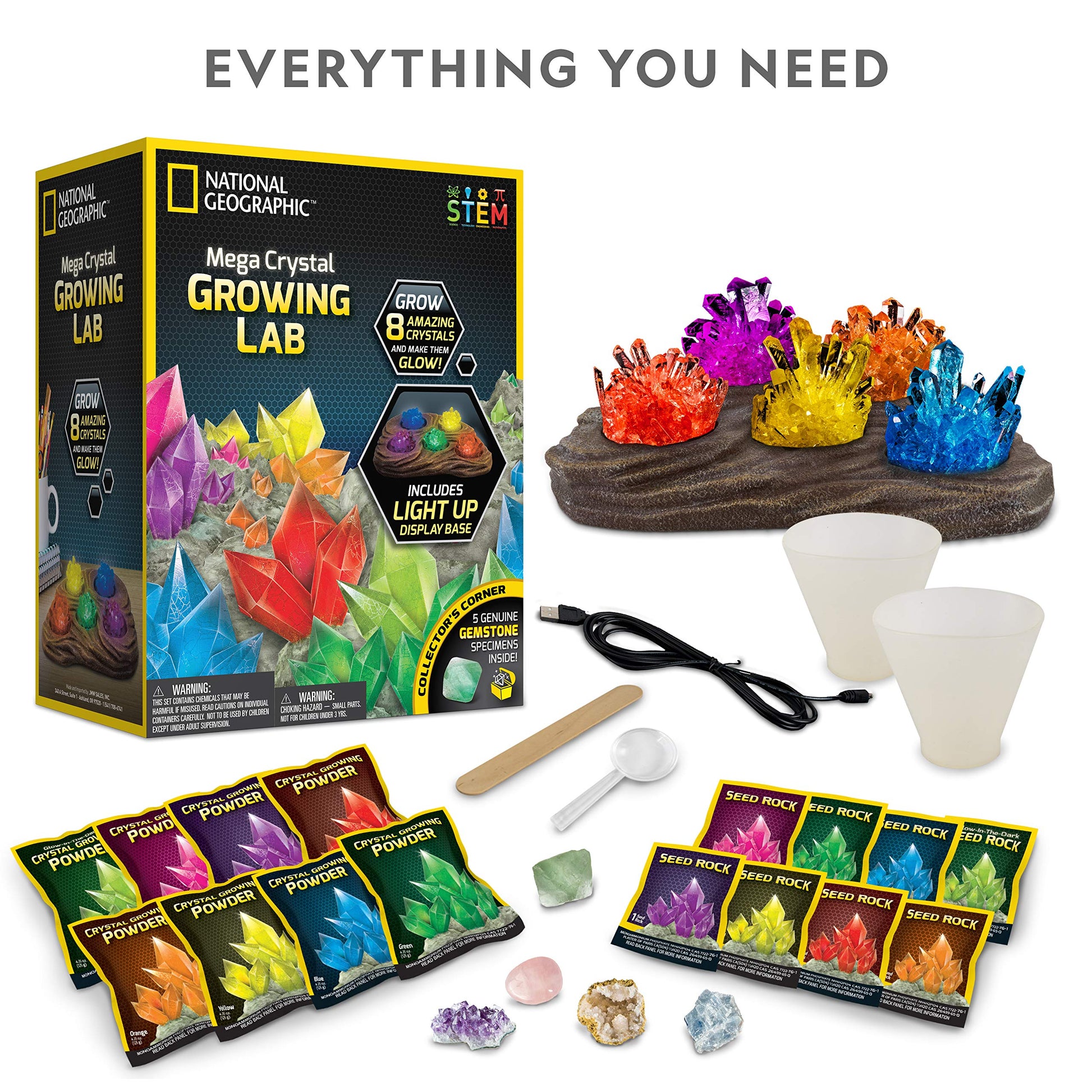 National Geographic Crystal Growing Kit - Grow 8 Light-Up Crystals, Science Gift for Kids 8-12
