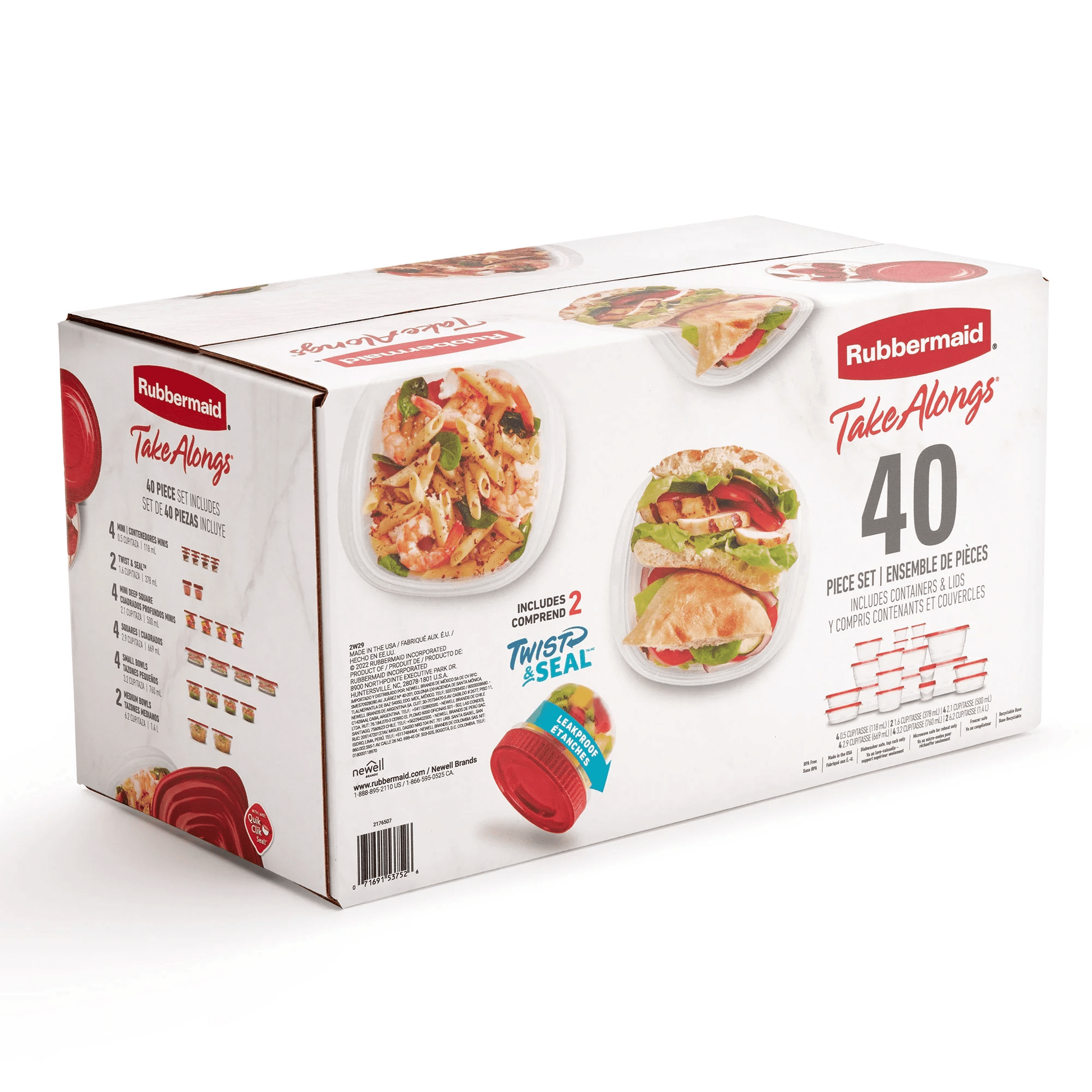 Rubbermaid Takealongs 40 Piece Food Storage Set, Red, Total of 12.6 Qts
