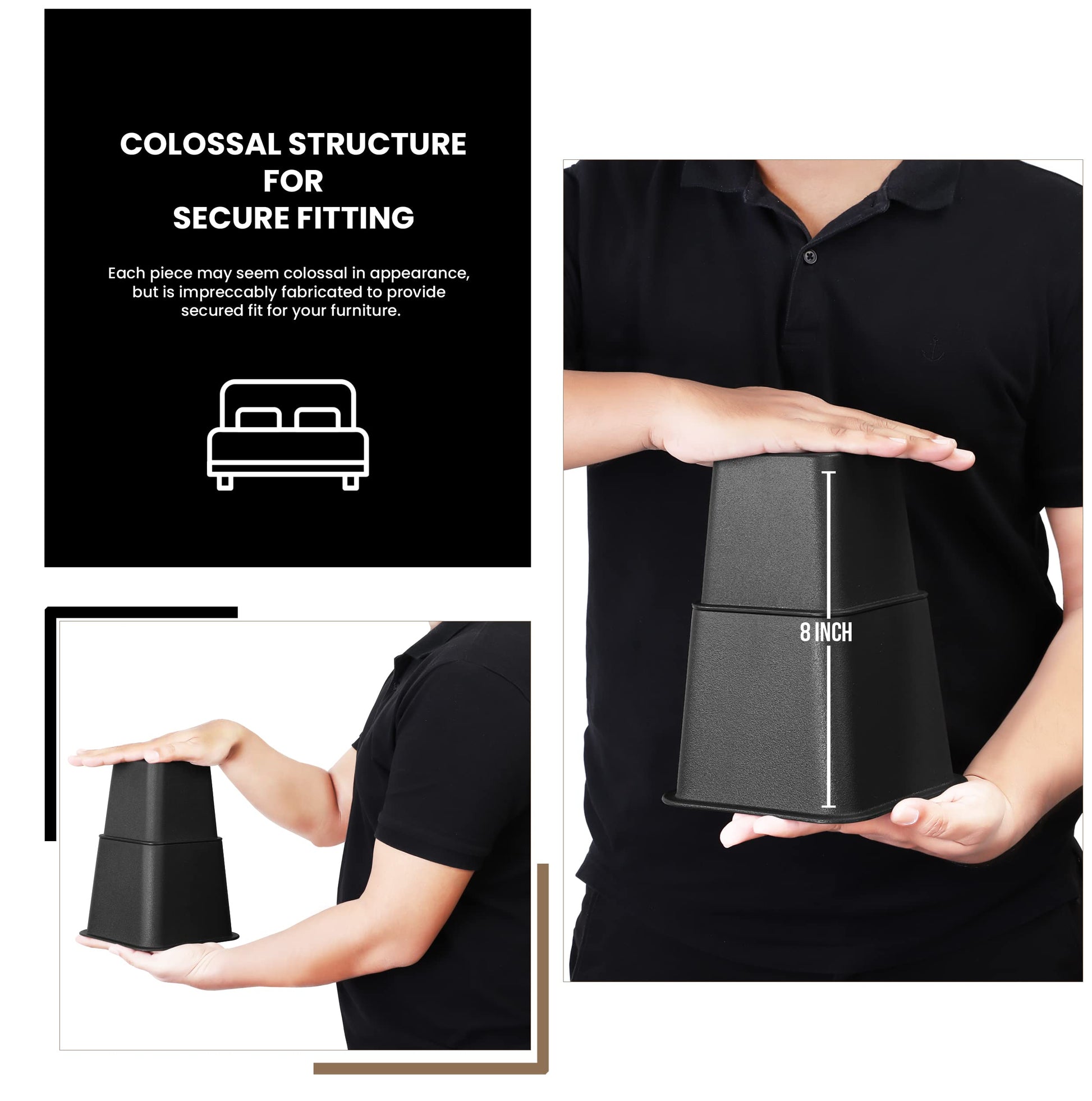 Utopia Bedding Adjustable Bed Furniture Risers - Elevation in Heights 3, 5 or 8 Inch Heavy Duty Risers for Beds - Supports up to 1,300 lbs - (Set of 4 Riser, Black)