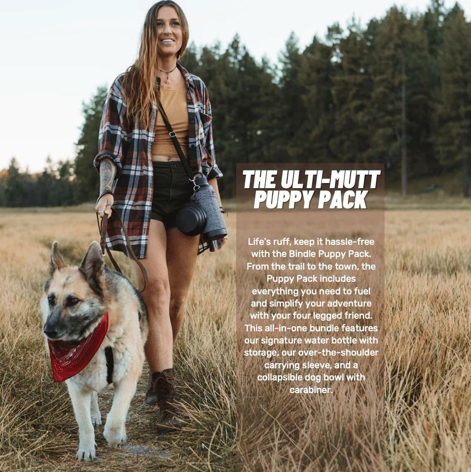 Life’s ruff, keep it hassle-free with the Bindle Puppy Pack. From the trail to the town, this ulti-mutt bundle includes everything you need to fuel and simplify your adventure with your four legged friend. This all-in-one bundle features our signature water bottle with storage, our over-the-shoulder carrying sleeve, and a collapsible dog bowl with carabiner.